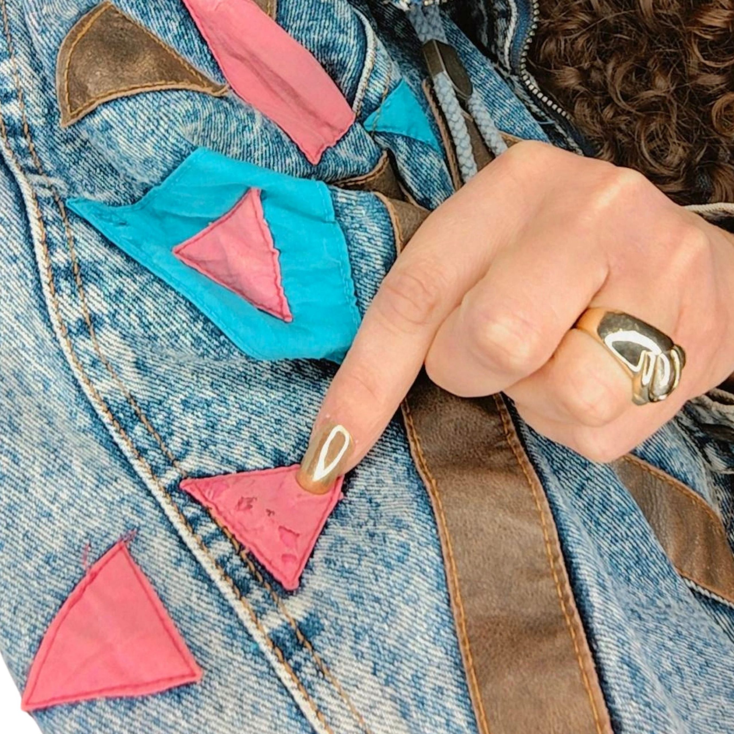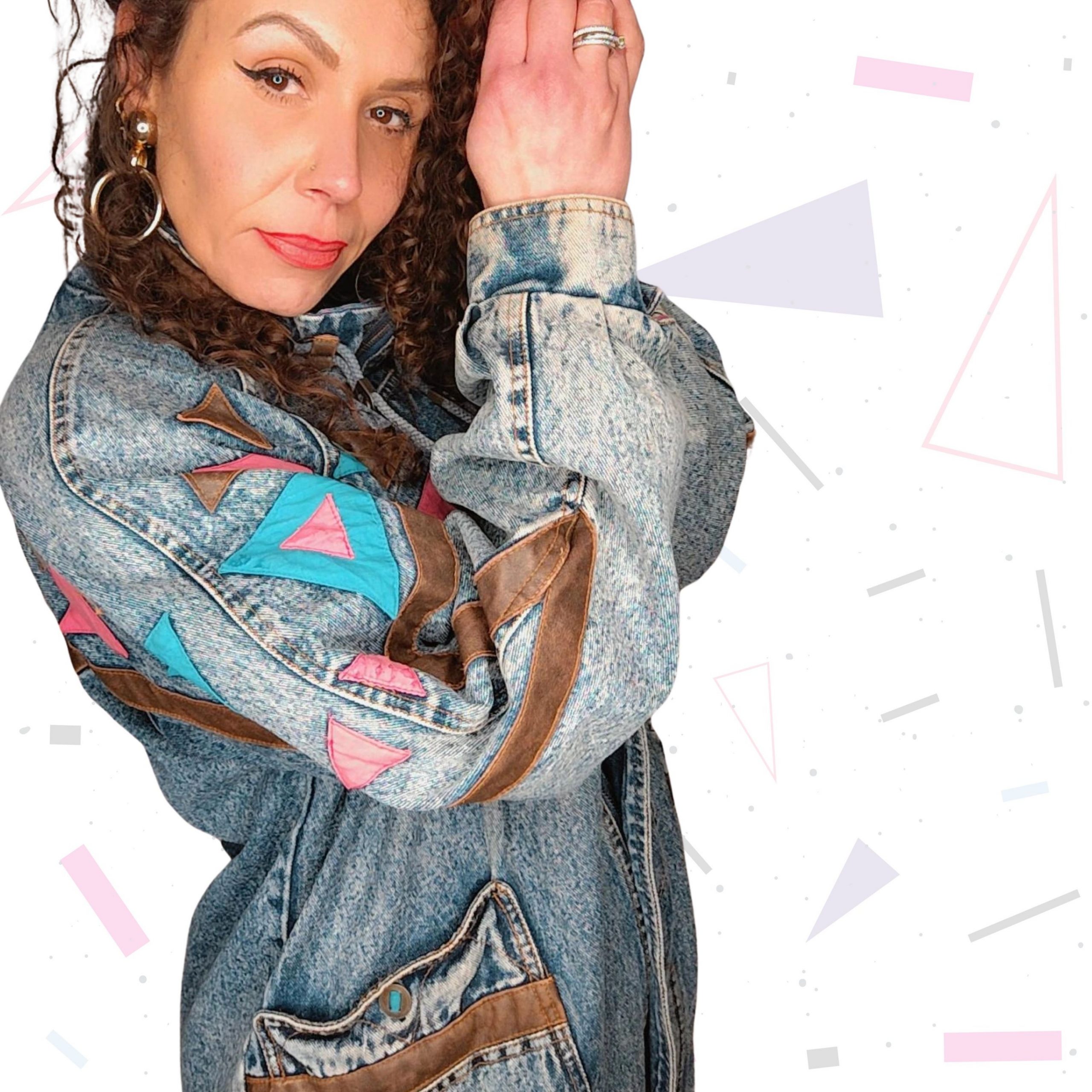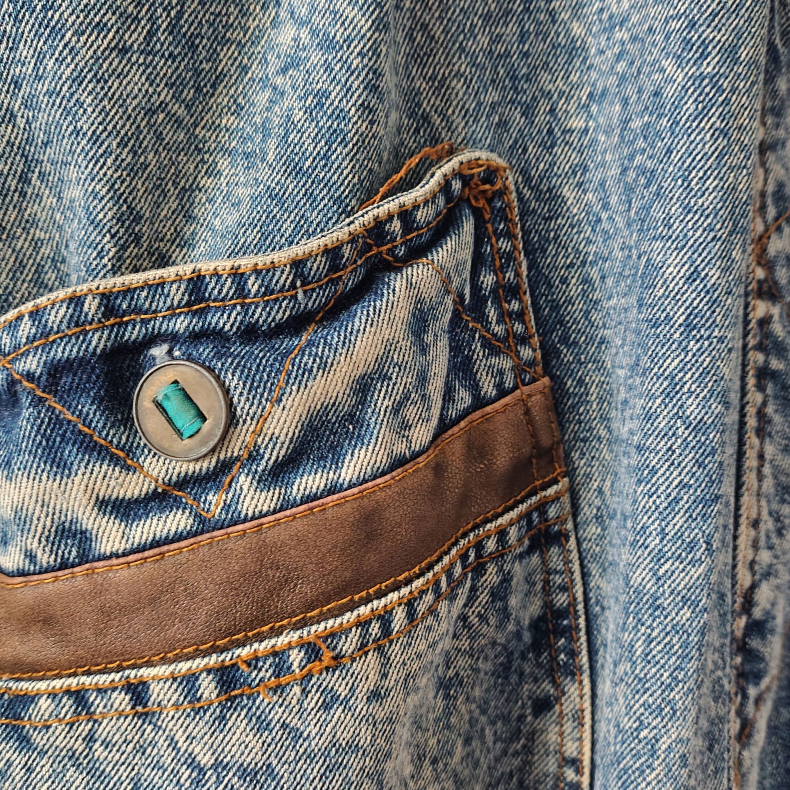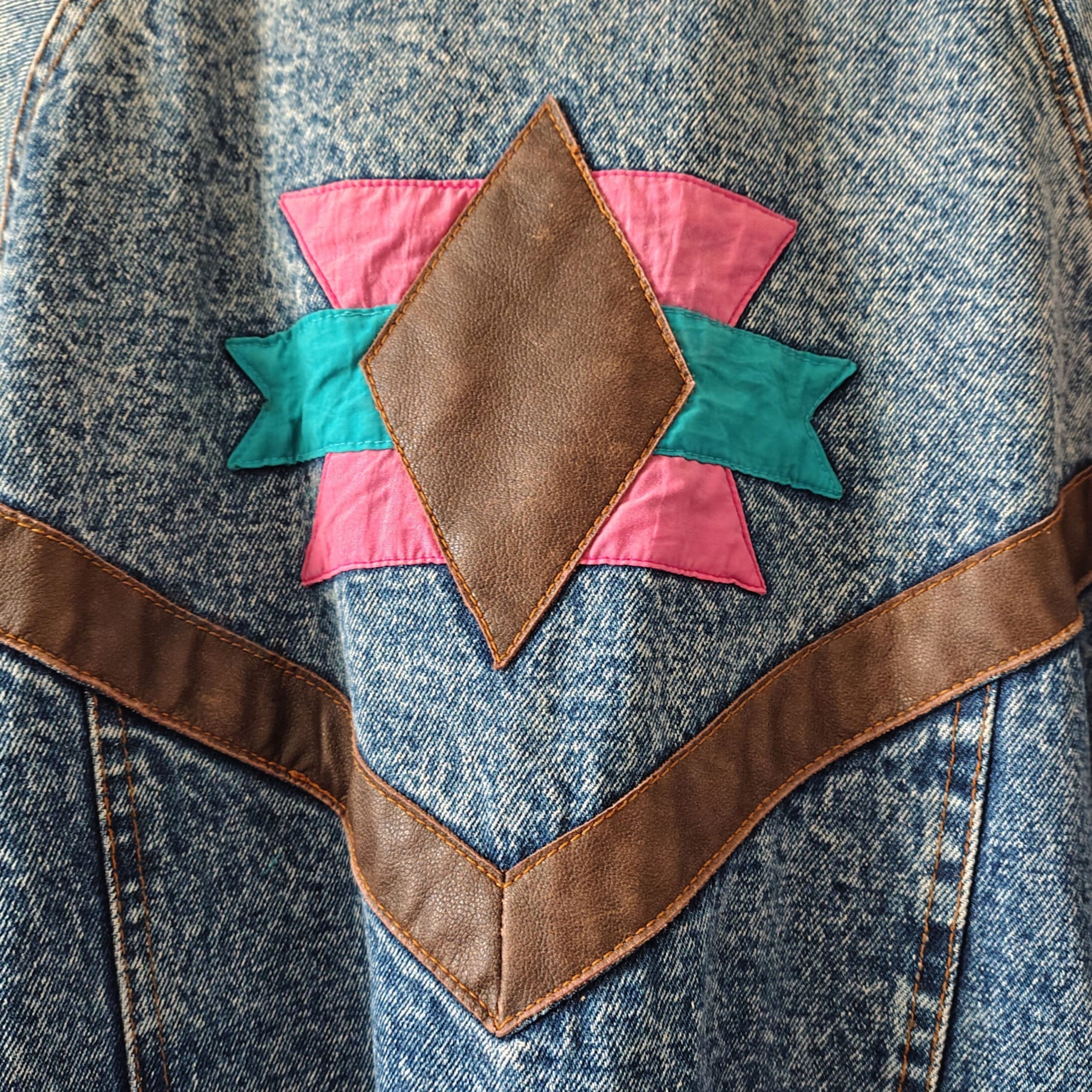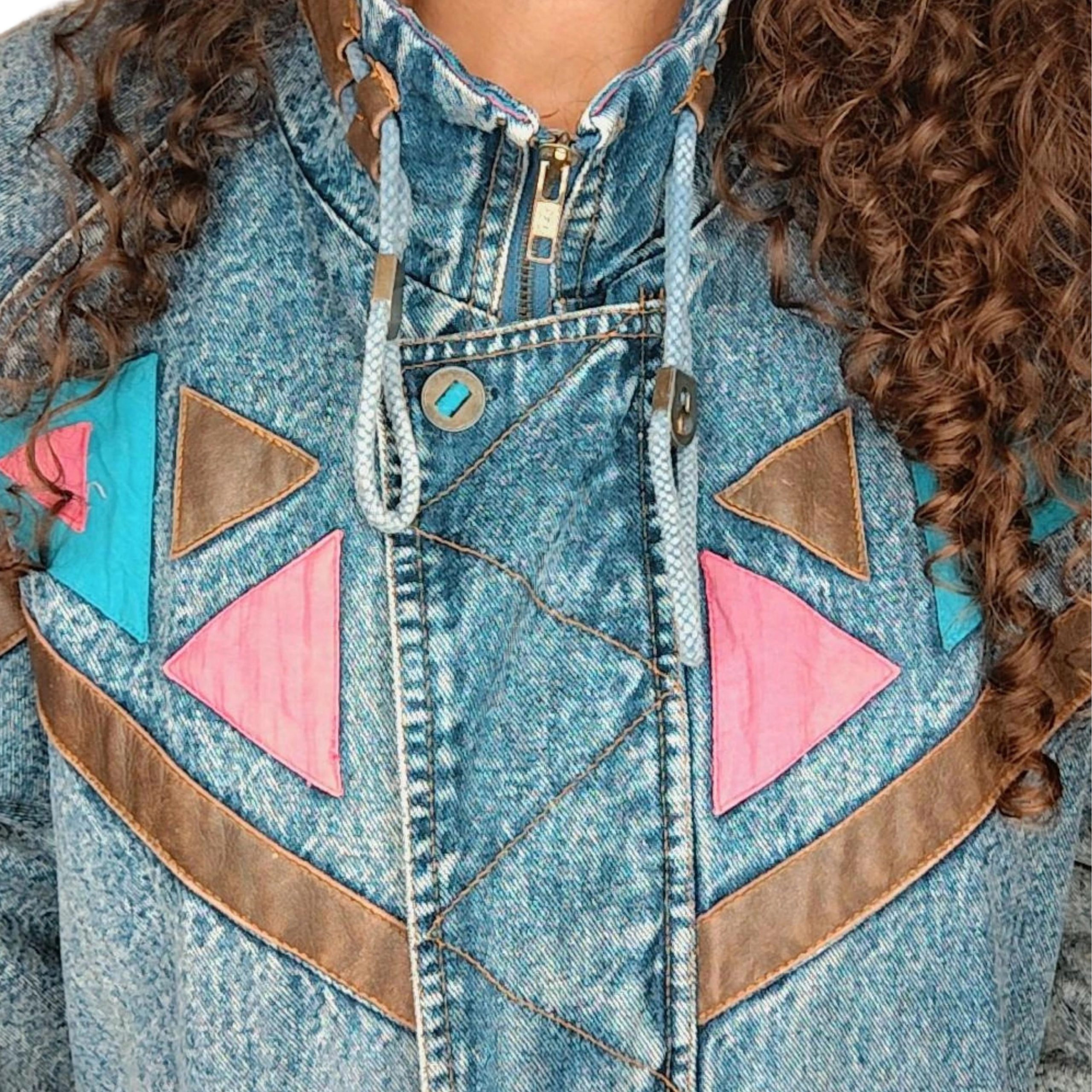 80s Acid Wash Denim Jacket with Colourful Accents
