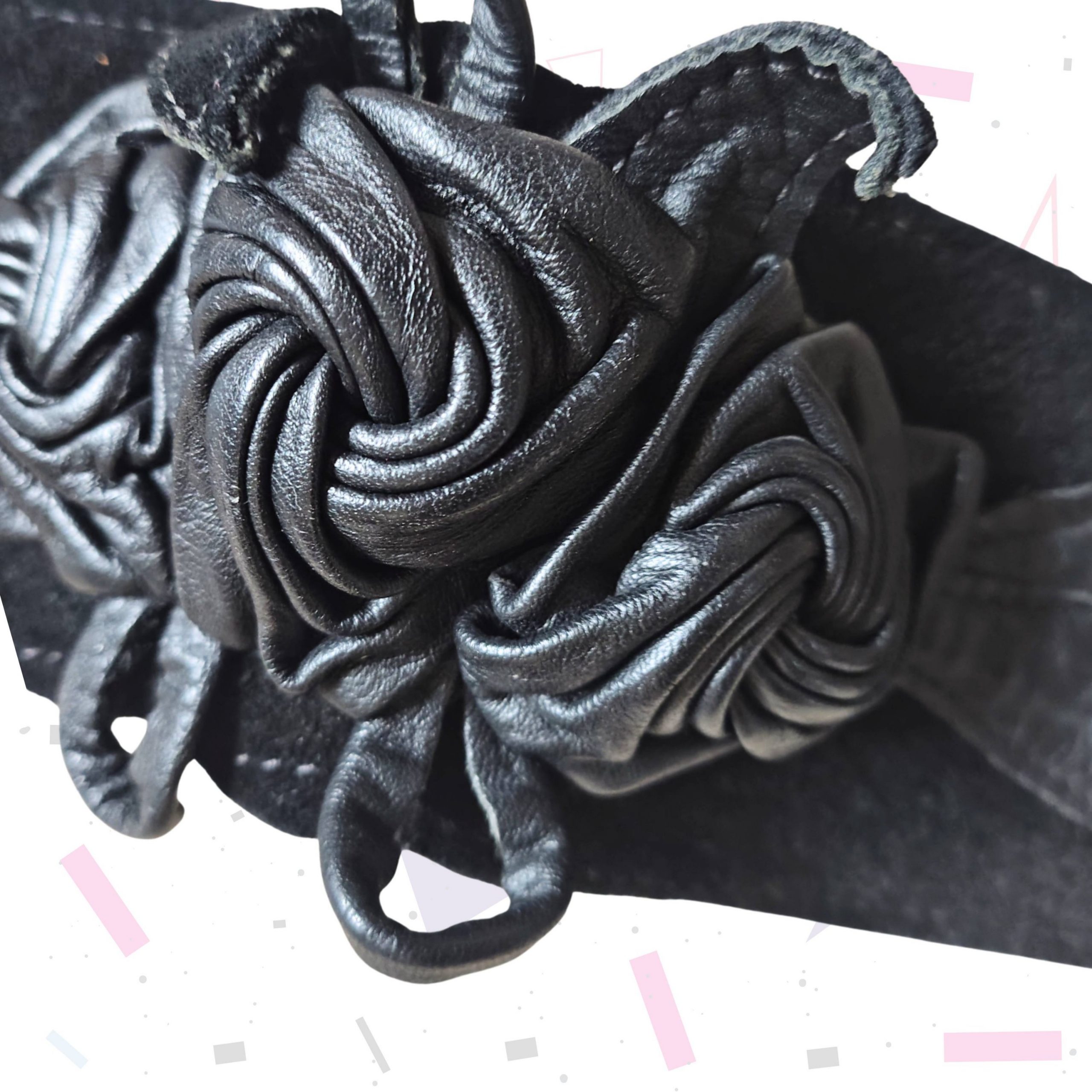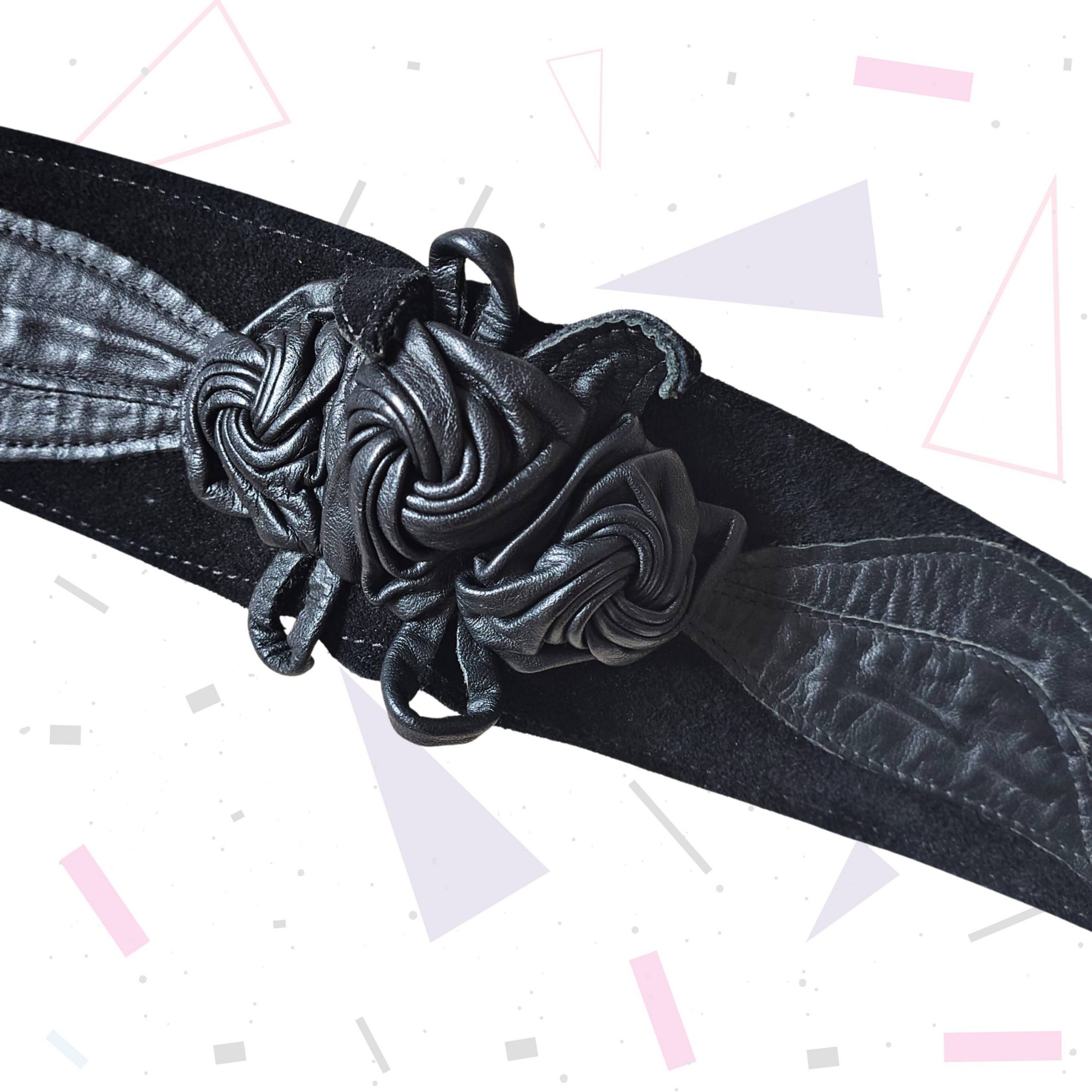 80s leather and suede belt with rose type detailing. Will fit 28-32″ waist. Excellent condition.