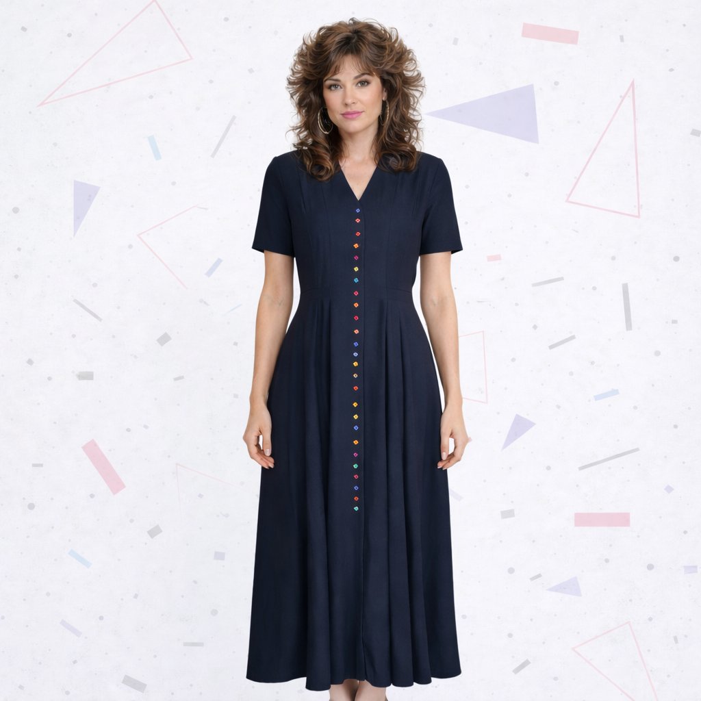 Black Maxi Dress with Colourful Buttons