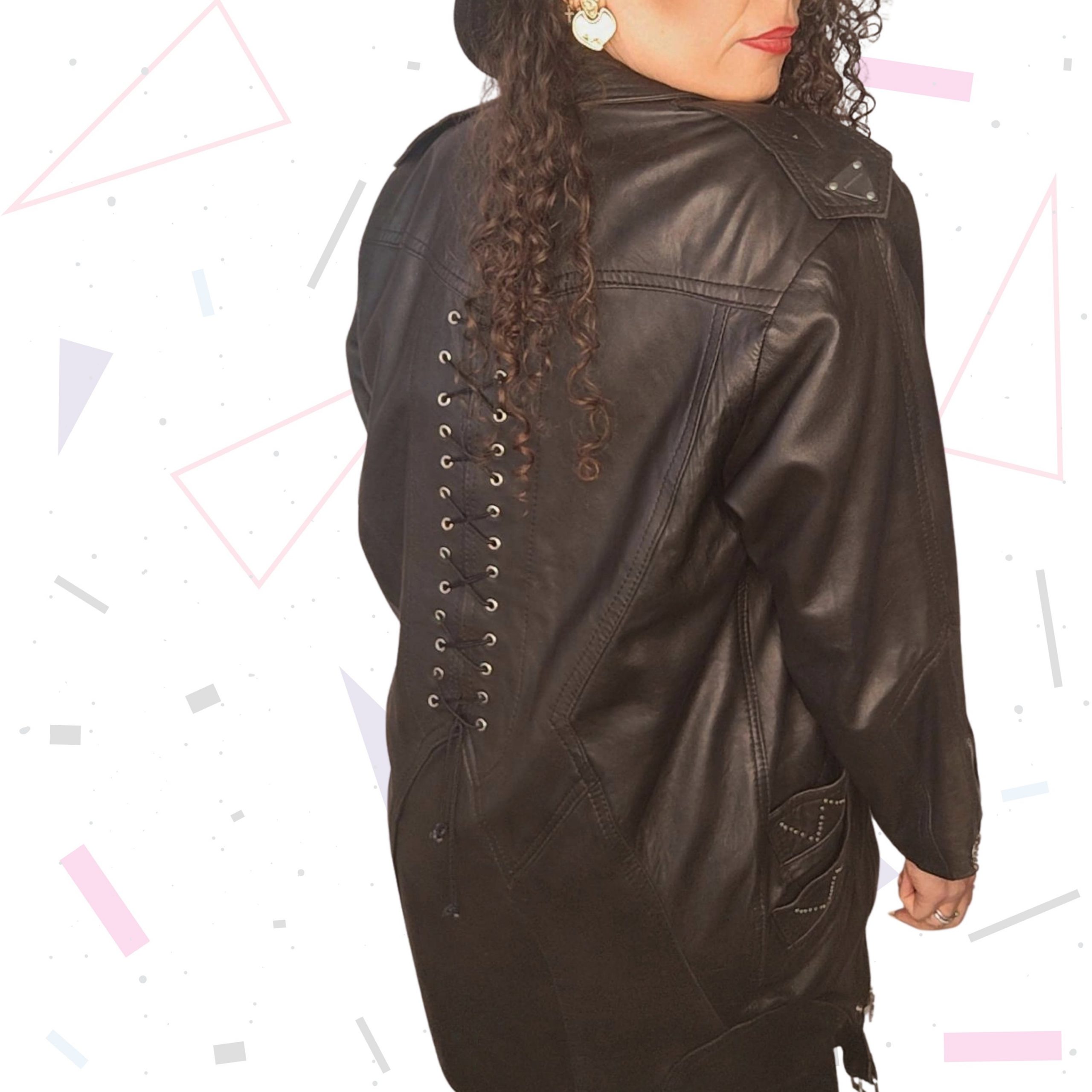 Vintage ‘Deckhand by WHITEBOYS’ mid length leather jacket. Featuring buttery soft leather and finished with silver metalware throughout. Has pockets, is lined and has lacing detail down the back. A rare longer version of the cropped biker jacket by the same brand.