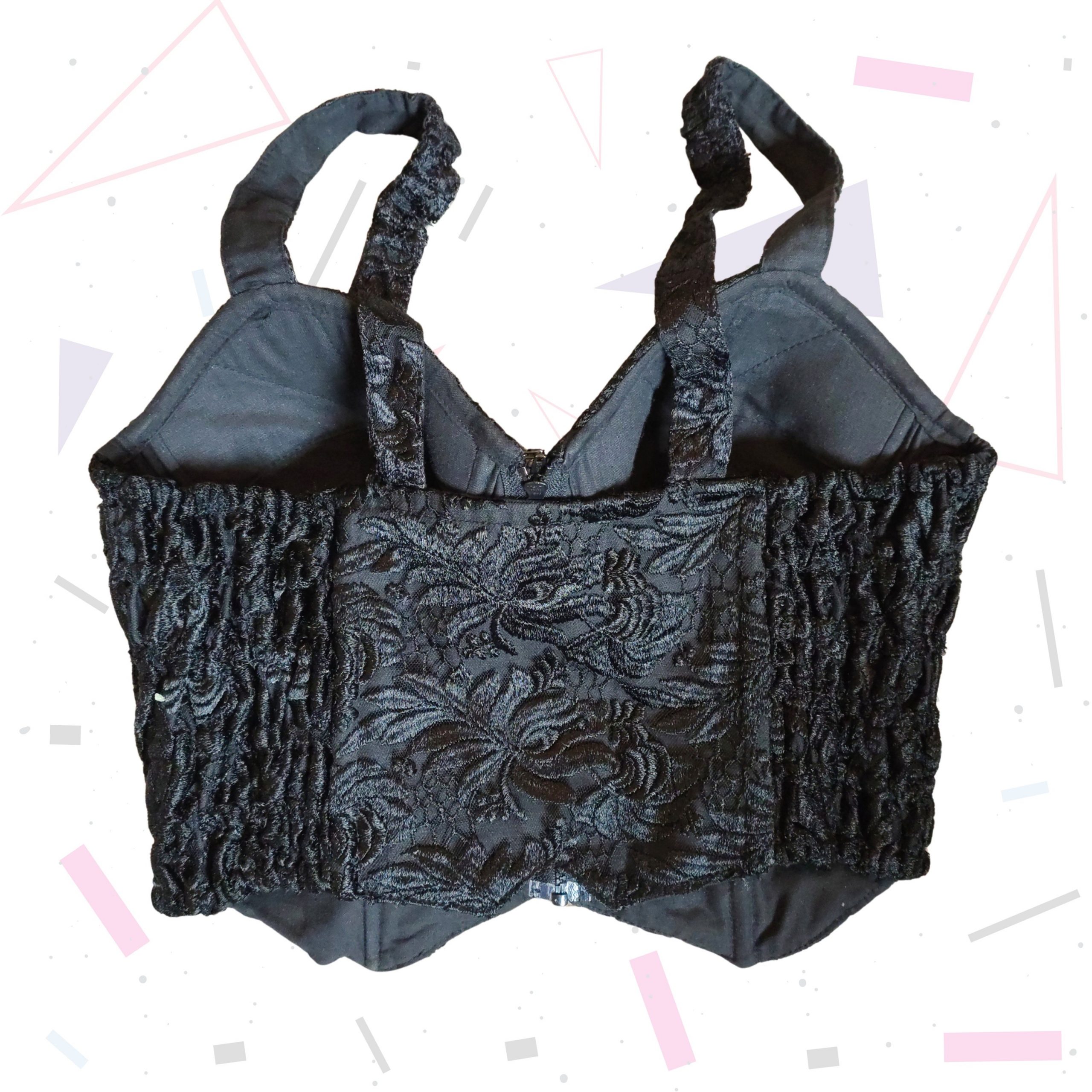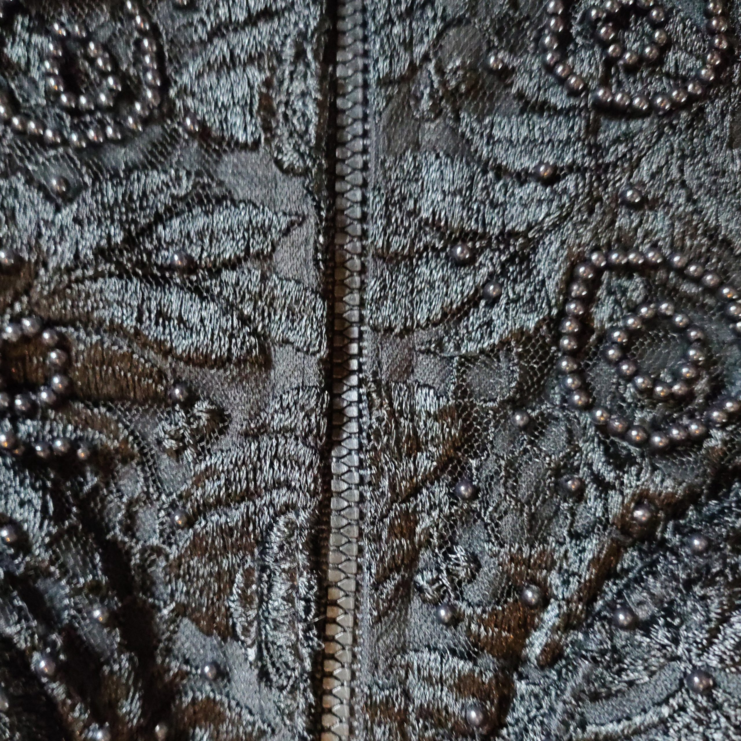 Details: Black lace and beading, zipper to front, elasticated around the back. Sits on the waist.